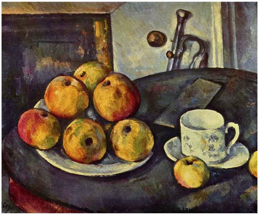 セザンヌの絵を初めて見ると、どこか不安定な印象を受ける。山はわずかに傾き、テーブルは水平を保たず、果物は静止しているのに画面全体が揺れているように感じられる。
