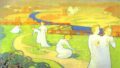 彼はイタリアのラヴェンナで見たビザンチン・モザイクから影響を受け、宗教的な光としての金を絵画の中に取り込んだ。