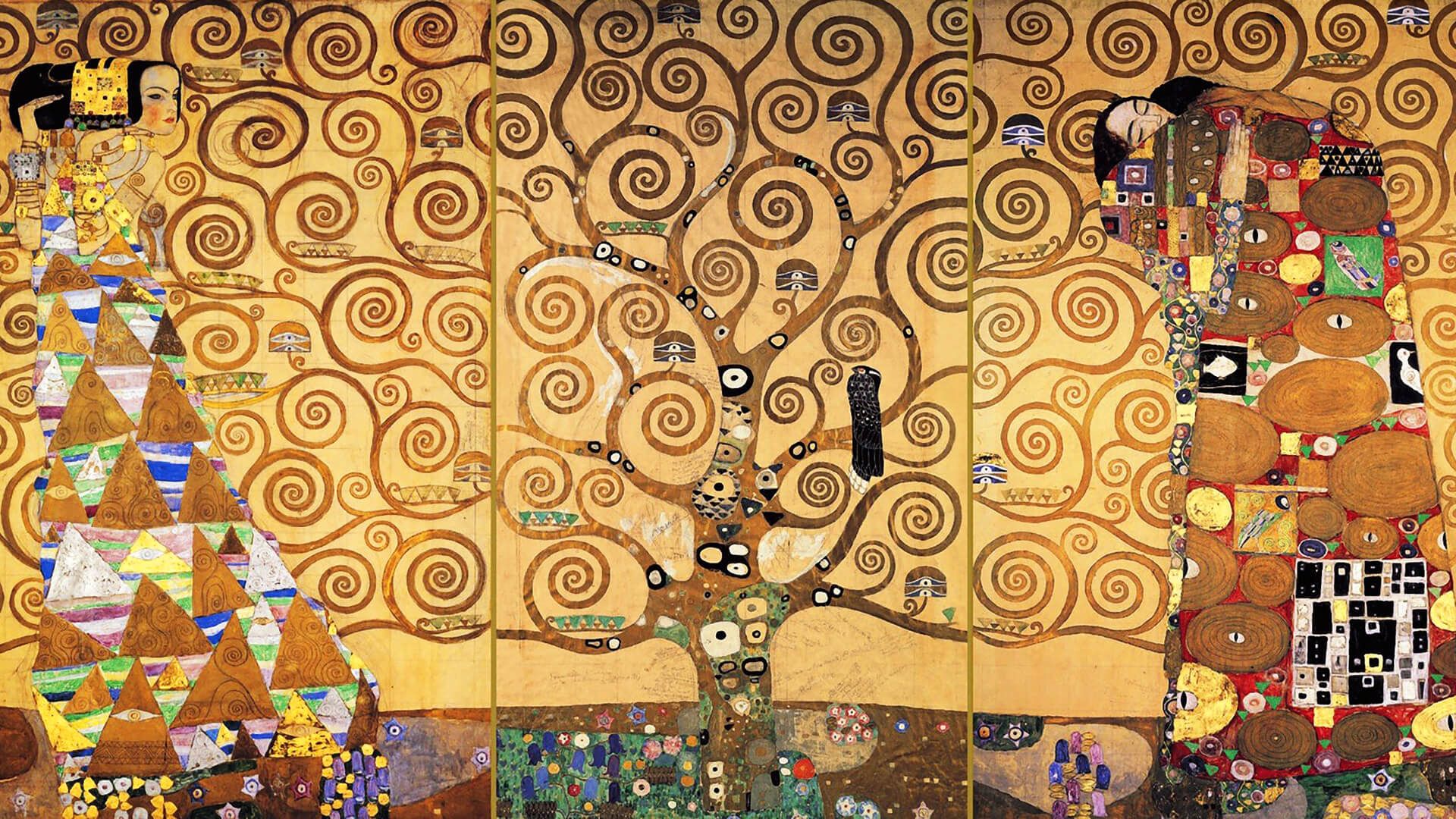 クリムトの装飾は、画面を埋め尽くすほどに増殖する。