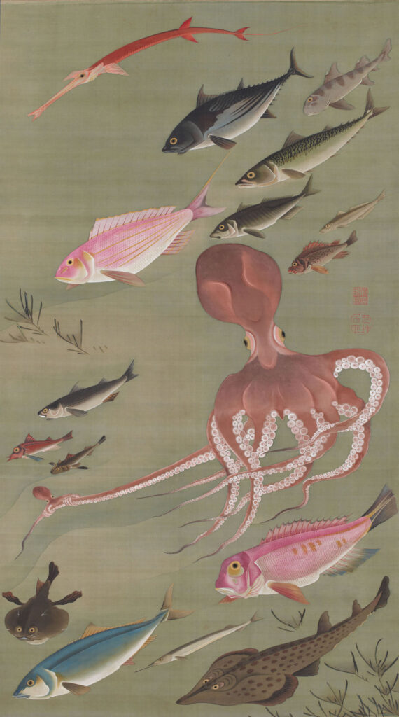 若冲の画面は、単なる一瞬の静止ではない。そこには生命の循環や変化が折り重なり、複数の時間が共存している。「今ここ」と「永遠」が同時に漂うような独特の時間感覚が、画面の奥に潜んでいるのである。