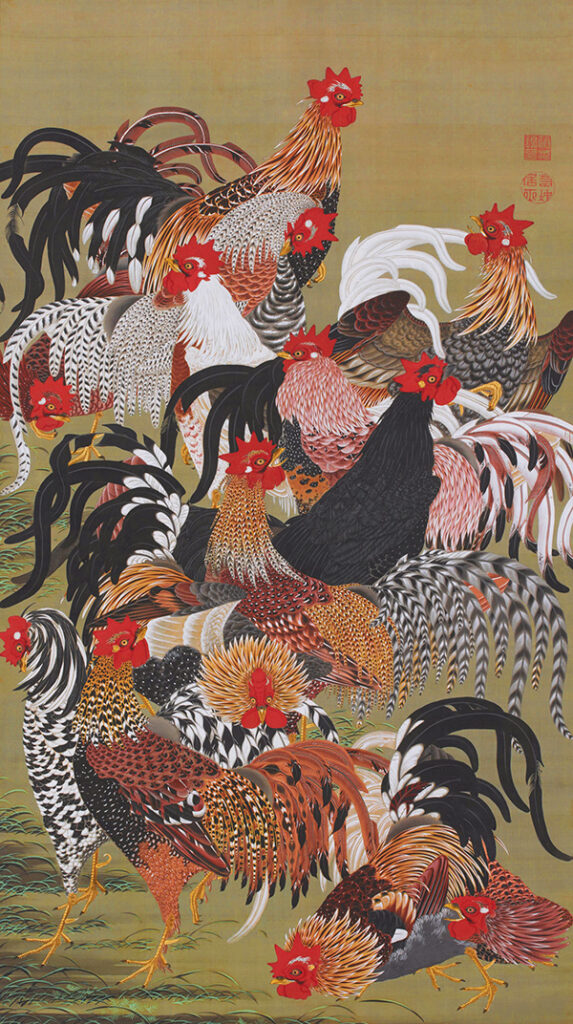 江戸中期の京都で活動した伊藤若冲の作品は、まずその圧倒的な精緻さによって観る者を引き込む。