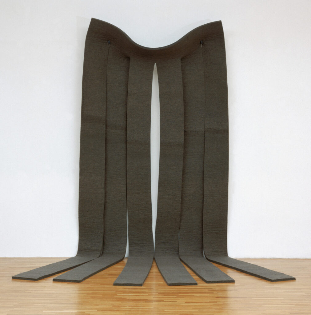 だが、この排除は完全ではなかった。ロバート・モリスの仕事が示すのは、身体性がいかにして回帰してしまうか、という問題である。フェルトが重力に従って垂れ下がる作品において、そこにあるのは構造ではなく出来事である。素材は自立せず、常に崩れ、たわみ、見る者の身体感覚を巻き込む。ミニマルの内部で、身体は別の形を取って戻ってきた。