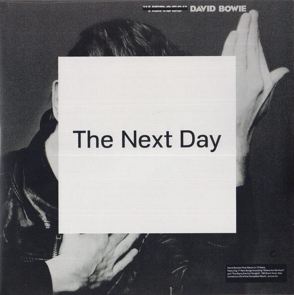 『Heroes』の写真の上に、無機質な白い正方形が貼られ、そこに《The Next Day》とだけ書かれている。