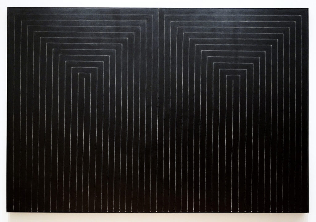 フランク・ステラの初期作品、とりわけブラック・ペインティングを前にすると、まずその「理知の強度」に圧倒される。画面には物語も象徴もなく、あるのは黒いストライプと、それを区切るわずかな間隔のみである。線の幅、反復のリズム、画面の端まで及ぶ構造は、感情や身振りを徹底的に排除した結果として現れている。