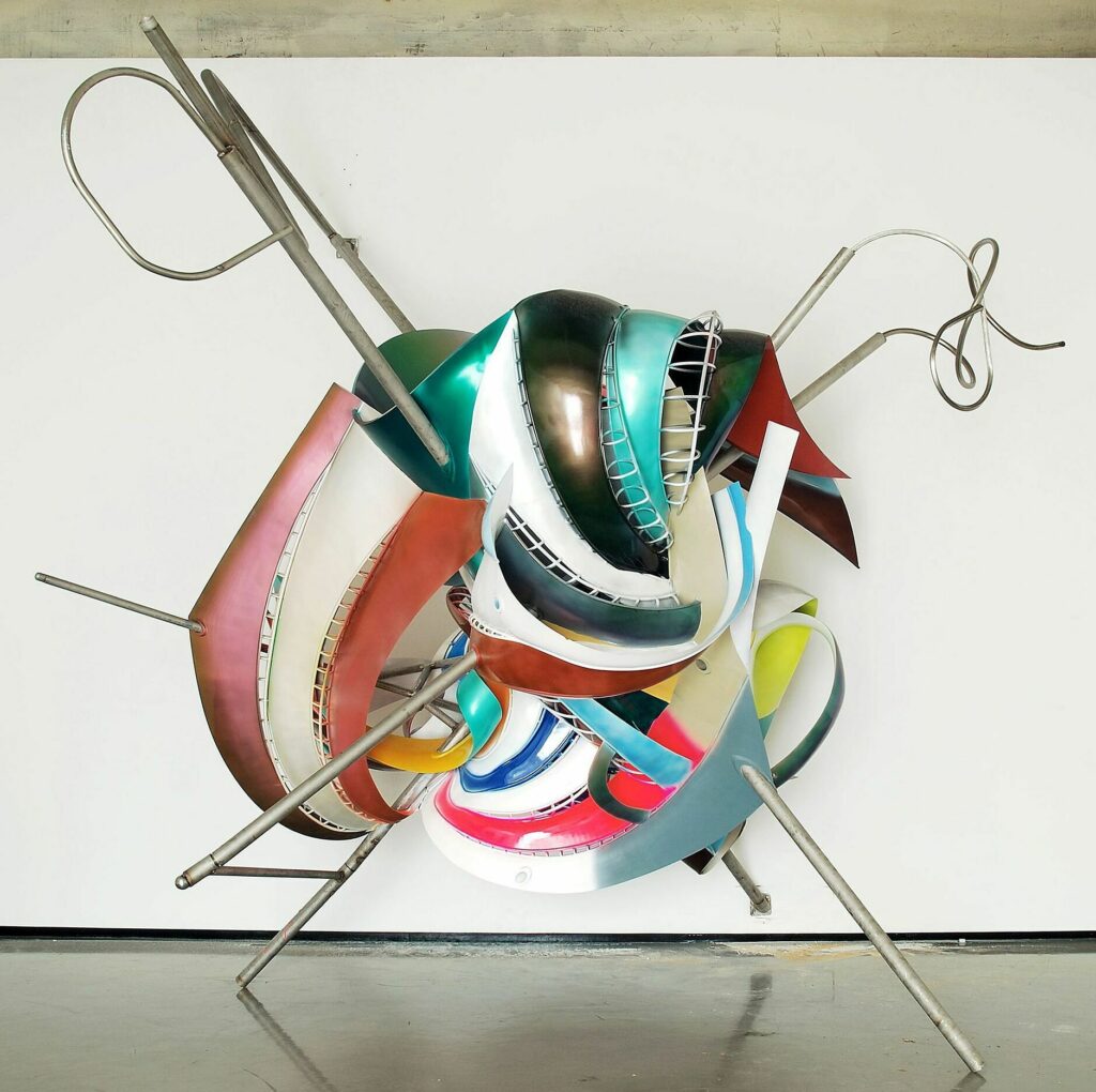 ステラはモダニズムを否定したのではない。モダニズムを食べきったのである。幾何学、色彩理論、構成主義、フォーマリズム ― それらをすべて飲み込み、消化した結果、残ったものがオブジェだった。その姿は、カツカレーの皿にたとえるなら、整然と配置された具材が、ついに皿の縁を越えて溢れ出す瞬間に近い。