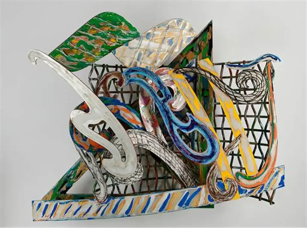 ステラの仕事が進むにつれ、平面は明らかに飽和していく。シェイプト・キャンバスによって絵画の外形そのものが構成要素となり、さらにレリーフへ、そしてオブジェへと移行していく過程は、単なる様式変化ではない。それは、ブラック・ペインティングに内在していた圧力が、形式を突き破った結果である。
