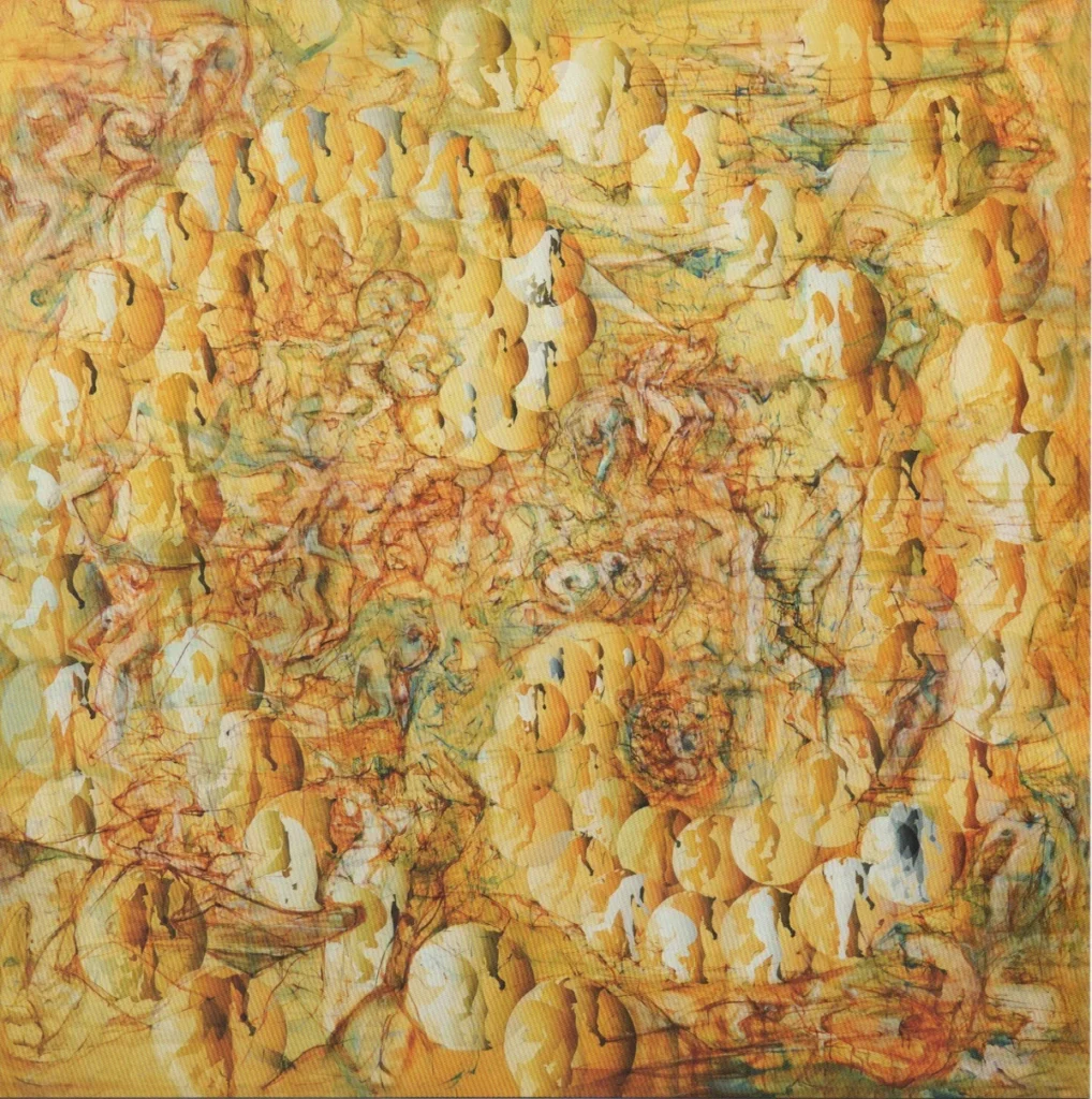 宇佐美の画面を見ていると、人型の反復が、やがて地表の模様や地球儀、あるいは衛星写真のように見えてくる瞬間がある。この視覚体験は、西洋的な遠近法的世界観というよりも、日本的な俯瞰と遍在の感覚に近い。中心のない構図、均質な密度、終わりのない反復。それらは、何かを象徴しているというよりも、世界そのものが一つのパターンとして立ち現れてくる感覚を生む。