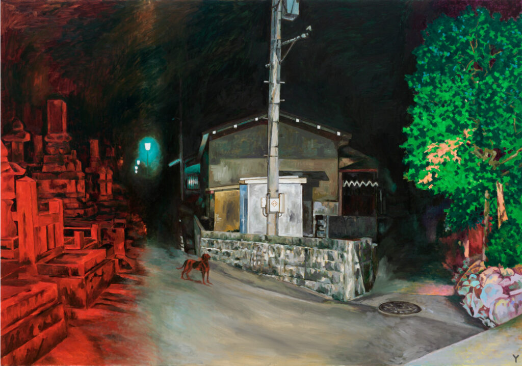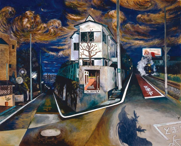 Y字路のシリーズもまた、象徴的である。横尾は旅先で偶然出会ったY字路に、強烈な既視感を覚えたと語っている。しかしそれは旅情の発見ではなく、選択が意味を持たない分岐への直感だった。どちらへ進んでも同じように見える道、あるいは進むこと自体が宙吊りにされる状況。これは、画家宣言後の横尾自身の状態と重なる。方向転換をしたはずなのに、どこへ向かっているのか分からない。その不確定性を、横尾は主題として反復した。