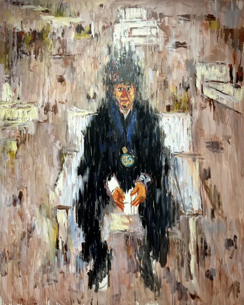 画家宣言以後の自画像やY字路のシリーズには、明確な緊張が宿っている。自画像は本来、画家にとって自己確認や様式確立の場になりやすい。しかし横尾の自画像は、自己を固定するどころか、毎回異なる文脈に引きずり込まれ、溶解していく。顔は描かれているが、主体は安定せず、死や宗教、マンガ的図像、過去の自己像が侵入する。そこにあるのは「横尾忠則という個人」ではなく、イメージが通過していく身体である。