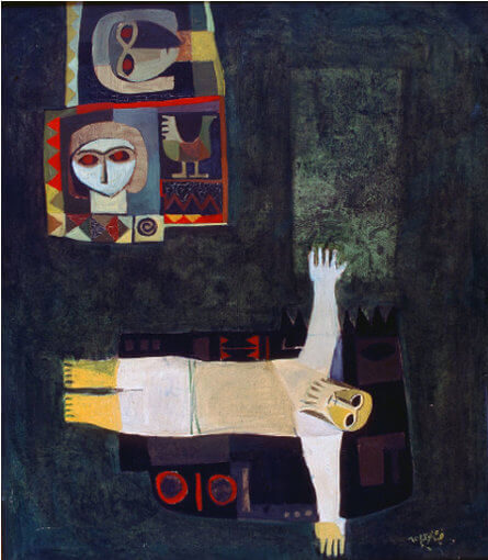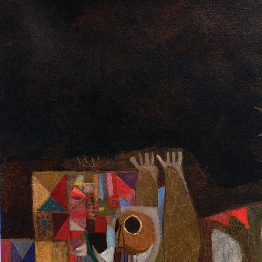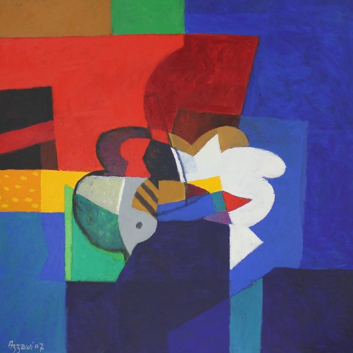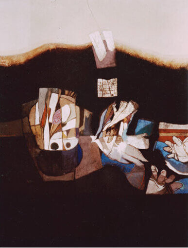 ディア・アル=アッザウィは1939年バグダッド生まれの画家・版画家であり、20世紀後半以降の中東美術を代表する存在の一人である。考古学を学んだ経歴を持ち、古代メソポタミア文明、アラブ詩、イスラーム以前の神話的イメージと、20世紀西洋美術 ―とりわけキュビズムや表現主義― を横断する独自の視覚言語を築いた。
