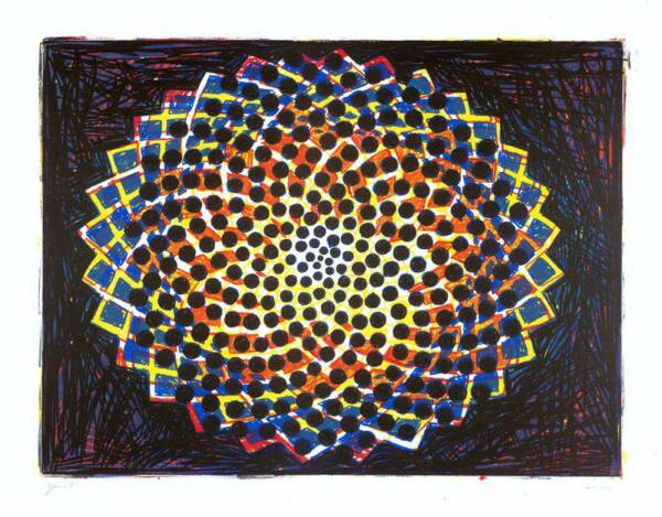 ウィンタース作品の最大の魅力は、画面に現れる形態そのものの引力にある。植物の芽、菌類、細胞分裂の瞬間を思わせるモチーフは、生命の始原的なイメージを喚起するが、それが象徴や寓意として固定されることはない。形は反復され、増殖し、わずかに変異しながら画面を構成する。この反復は装飾的であると同時に、観る者の視線を画面内部へと引き込むリズムを生む。