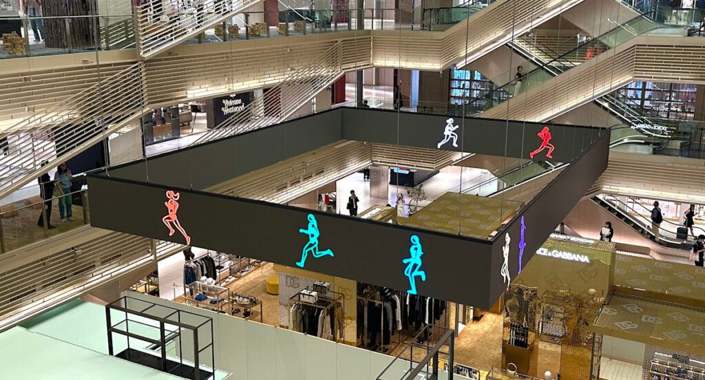 オピーの人物像がしばしばピクトグラムに喩えられるのは、その即時的可読性ゆえである。輪郭線と色面だけで構成された人物は、一瞬で「人」として認識される。これは公共サインが持つ視覚的機能性と極めて近い。しかし、公共サインが本来担うはずの「指示」は、オピーの作品からは完全に抜き取られている。