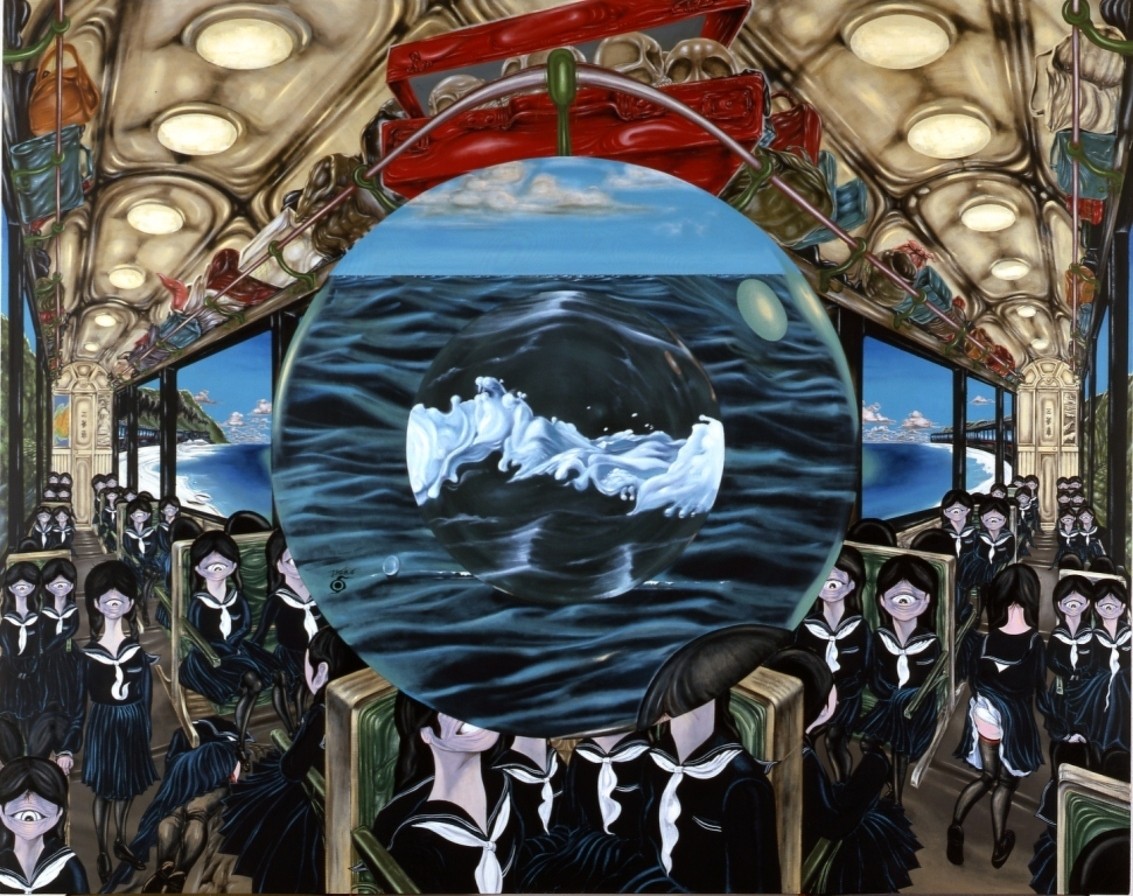 重要なのは、この虚無が絵画そのものの否定には向かわない点である。画面の構図は安定し、空間は成立し、描写は丁寧に積み重ねられている。世界は不安定であっても、画面は保たれる。この関係が、彼の作品に特有の信頼感を与えている。多くの戦後美術が表象の不信や絵画の死を意識し、皮肉や批評性へと傾いたのに対し、中村は絵画の回路が観客に通じることを疑わない。だからこそ、写実、デフォルメ、漫画的線描といった異なるレベルの表現を同一画面に並置しても、画面は崩壊しない。むしろそれらは、共有可能な入口として機能する。
