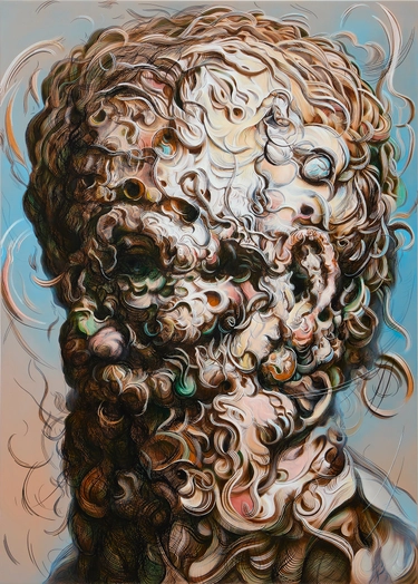 グレン・ブラウンの作品を前にすると、まず視線はその異様な筆致に絡め取られる。渦を巻く肉、溶解する顔貌、光を過剰に孕んだ皮膚。画面は一見、激しいインパストに覆われているように見える。しかし近づくと、そこには物理的な厚みがほとんど存在しないことに気づく。絵具は盛り上がっていない。表面は驚くほど平滑である。