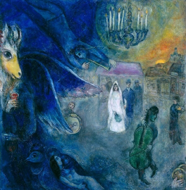 シャガールの絵を特徴づけるのは、意味の余剰である。物語が提示されているようで、どこか定まりきらない。空間の秩序はゆるみ、時間は伸縮し、重力までもが失効する。こうした“もうひとつの現実”が余剰として漂うことで、見る者に自由な解釈の余地が与えられ、絵画体験は豊かになる。シャガールは意味を統合するのではなく、融け合ったままの幸福な混沌として世界を提示し、その混沌こそが「生きることの美味しさ」を回復すると考えたかのようである。