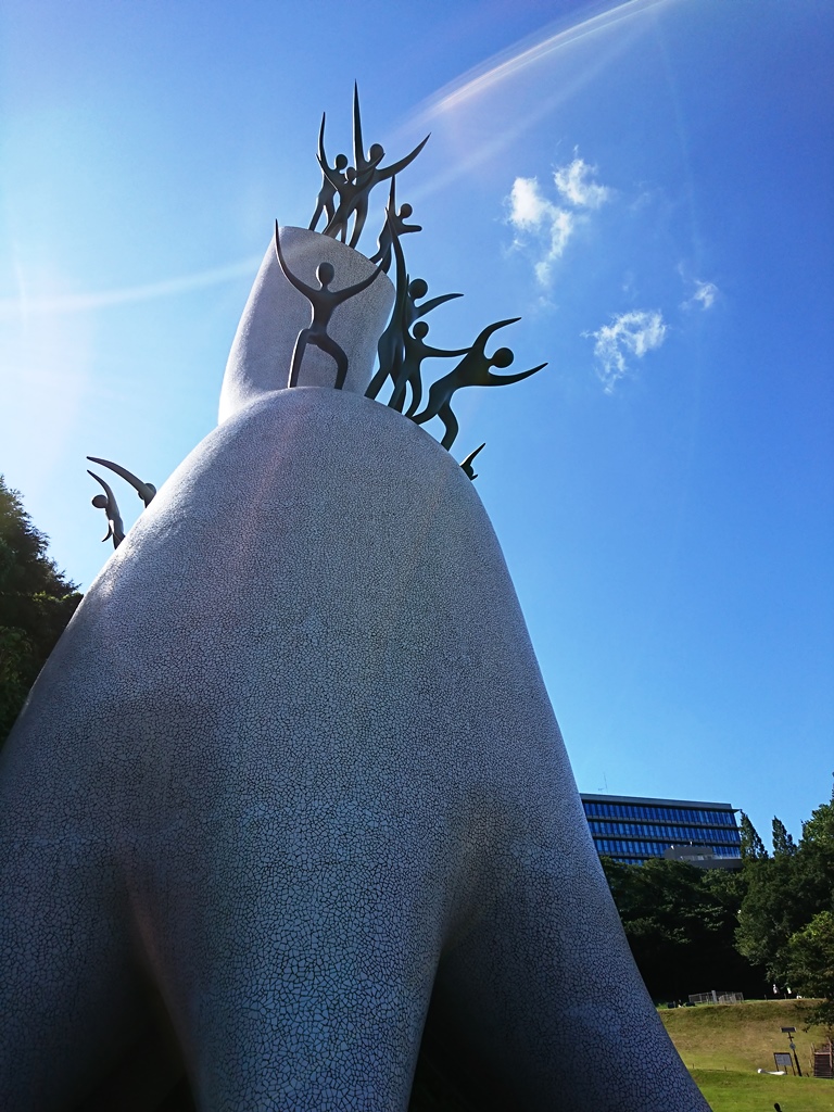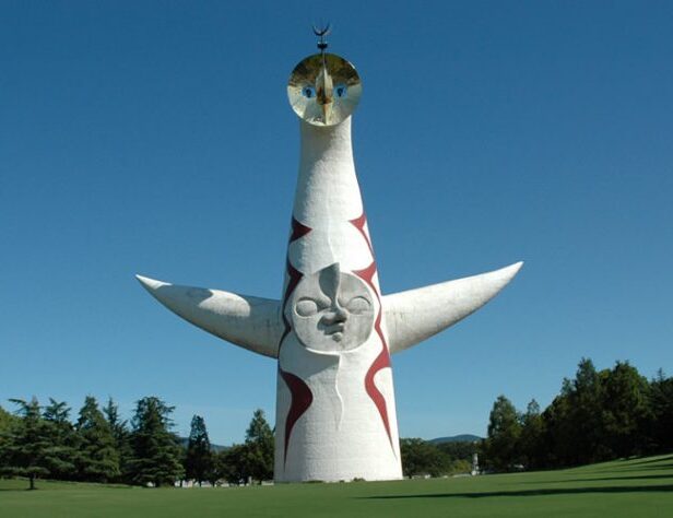 1970年の《太陽の塔》は、岡本思想の結晶である。三つの顔が「過去」「現在」「未来」を象徴し、内部には縄文的トーテムと機械的構造物が共存する。神話・科学・民俗・未来が一体化した“文化的カツカレー”は、合理主義的建築や抽象主義的造形とは異なり、「文明と原始」「科学と呪術」「近代と神話」の衝突をそのままエネルギー化する装置である。巨大作品ゆえに、行政や企業、建設技術者といった社会的支援が不可欠であり、岡本一人の力では実現できなかった。ここには、家族の文化的ネットワークや戦後の公共事業の追い風、文化人や批評家の理解と支援が複合的に作用していた。また、太陽の塔内部の展示では、縄文土器や原始美術の造形が未来的機械装置と混ざり合い、岡本がフランスで学んだ文化人類学的知見と自国文化の美学が統合されている。