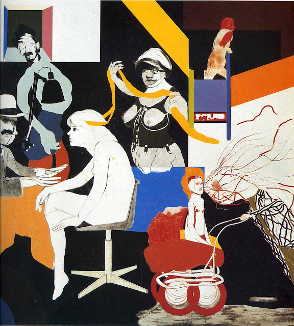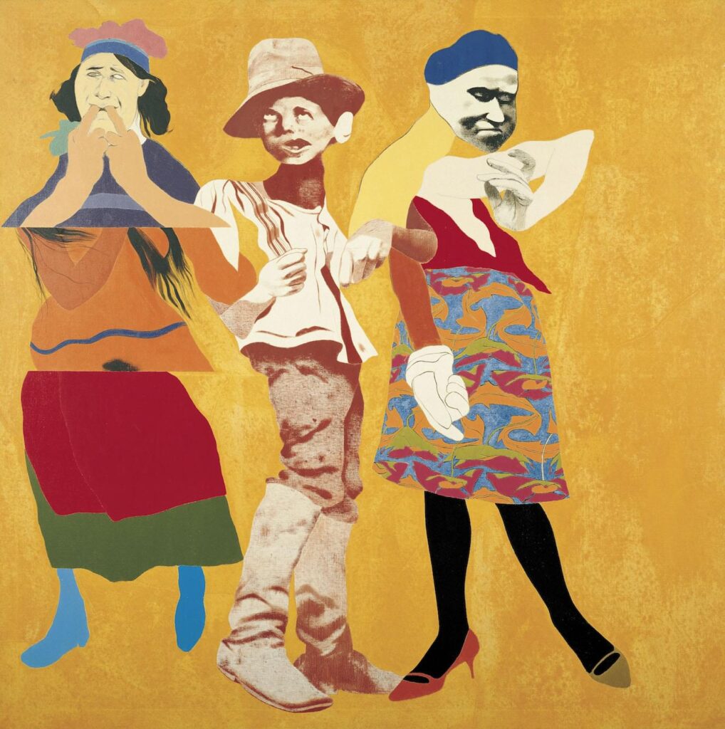 ロナルド・ブルックス・キタイの作品を見ると、まず圧倒されるのは色彩の奔放さと構図の自由さである。西洋美術の伝統的な遠近法や構図の規則を参照しつつも、彼はその枠を大胆に逸脱し、平面に遊び心と物語性を持ち込む。色の塗り重ね、線の跳躍、図像の断片的な配置は、まるでカレーのルーがライスの上で自由に広がるように、画面全体に即興のリズムを生む。
