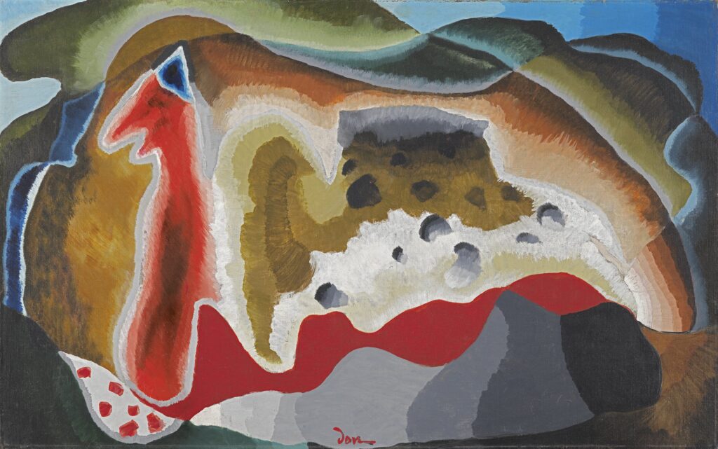 ダヴは1910年代からすでに抽象的な作品を制作していたが、その抽象は自然を離れた純粋形式ではない。風景の感覚は常に画面のどこかに残り、形は単純化されながらも、空気や光の気配を保ち続ける。彼の絵は、風景と抽象のあいだで静かに揺れ動いている。
