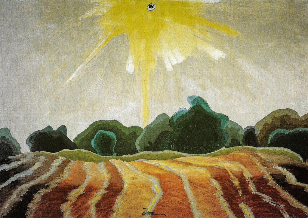 アーサー・ダヴ の絵は自然を描きながら、その外形を写すことには満足しない。風景の奥にあるリズムや振動、光の気配を画面の中に引き出そうとする。丘や雲は単純化され、色と形の流れへと変わっていくが、それは自然を離れるためではなく、自然の内部にある力を表面へ押し出すためでもあった。